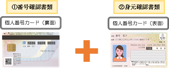 個人番号カードをご用意ください。1枚で番号確認と身元確認が可能です。