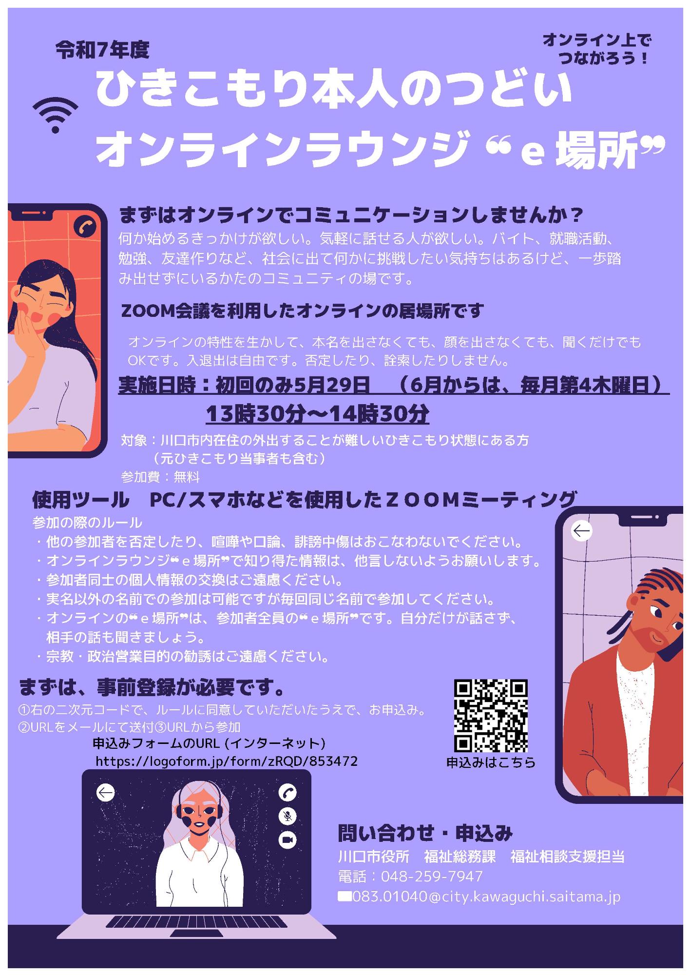 ひきこもり本人のつどいオンラインラウンジe場所(PDFファイル:168.6KB)