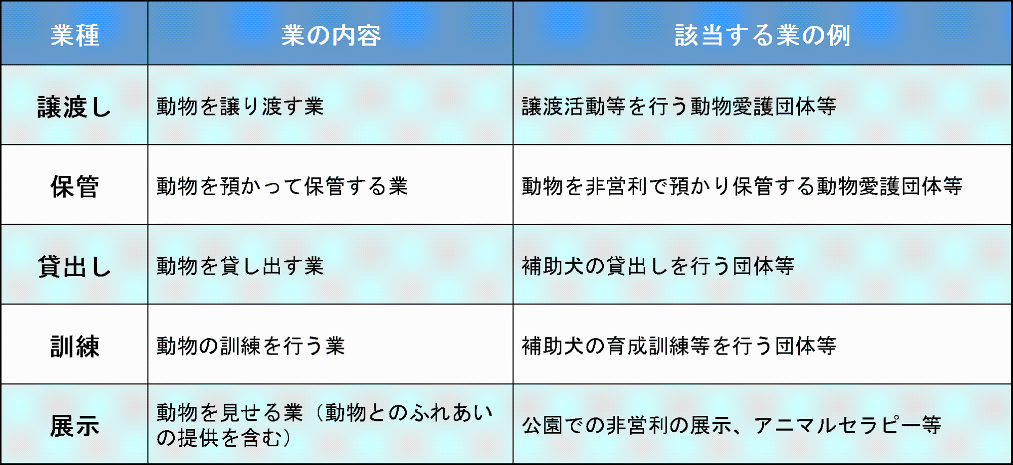 なお、営利性を有する場合は「第一種動物取扱業」となり、登録が必要となりますのでご注意ください。