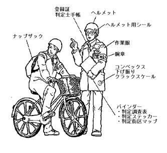 被災建築物応急危険度判定士は、被災地において、市長(被災建築物応急危険度判定実施本部)の要請により、被災建築物の応急危険度判定をボランティアで行う建築技術者です。被災建築物応急危険度判定士は、「埼玉県被災建築物応急危険度判定士認定要綱」に基づき、知事が行う講習会等を受講して認定登録を受けています。被災建築物応急危険度判定士は、判定活動に従事する場合、常に身分を証明する登録証を携帯し、「応急危険度判定士」と明示した腕章及びヘルメットを着用します。